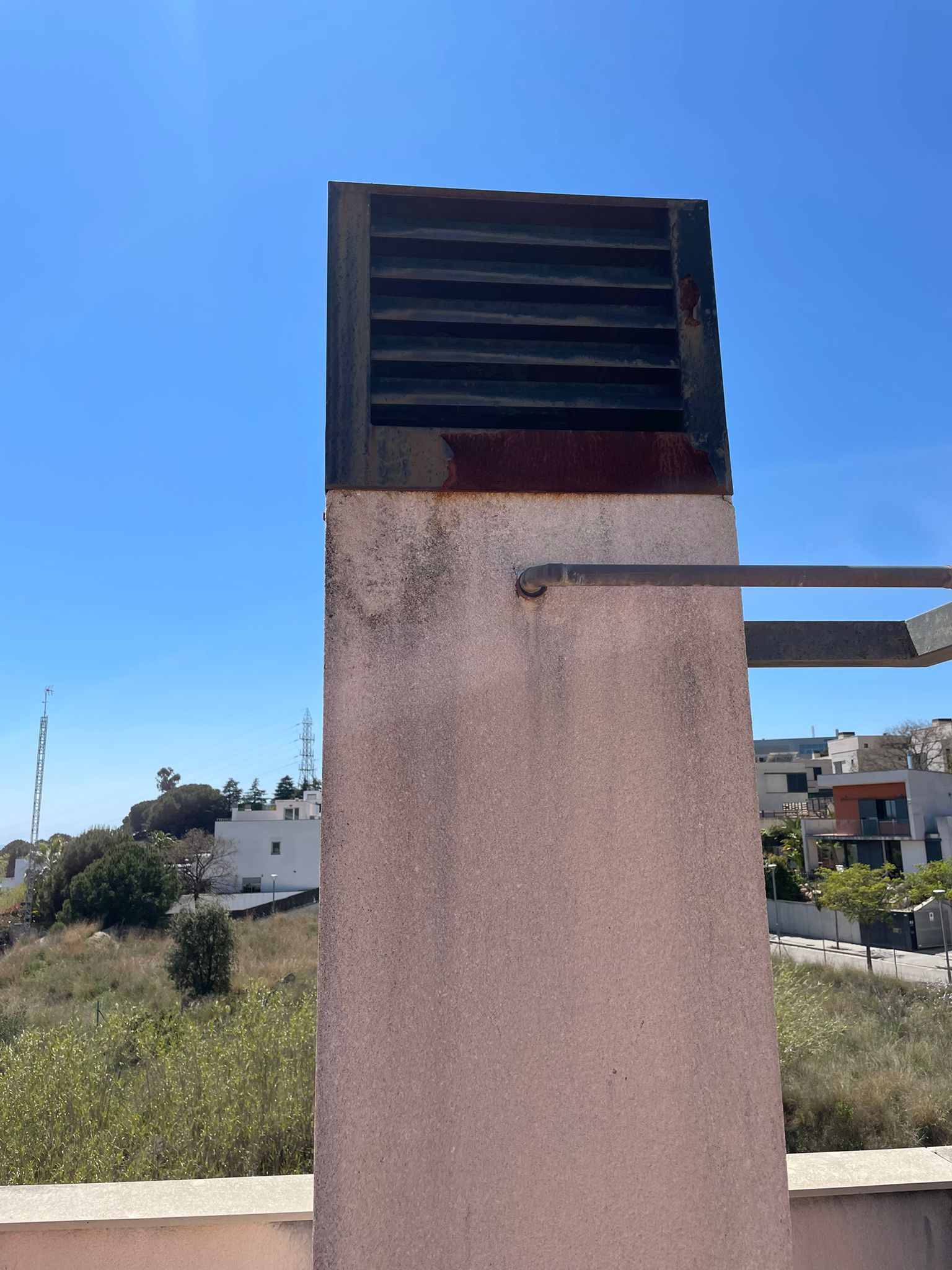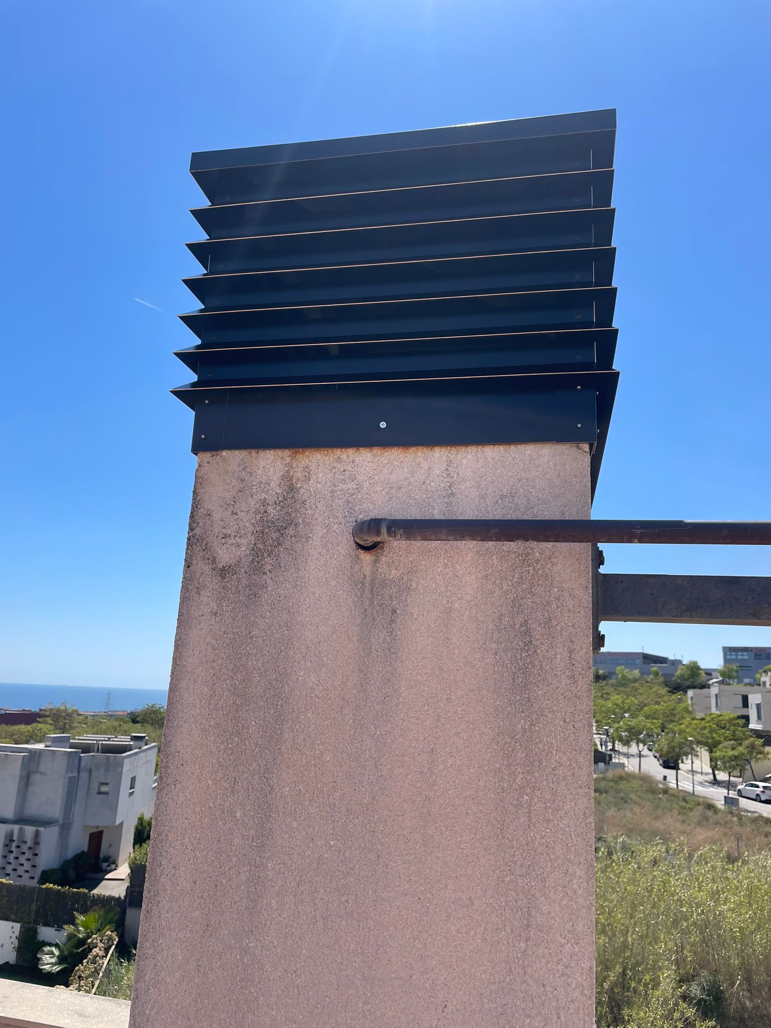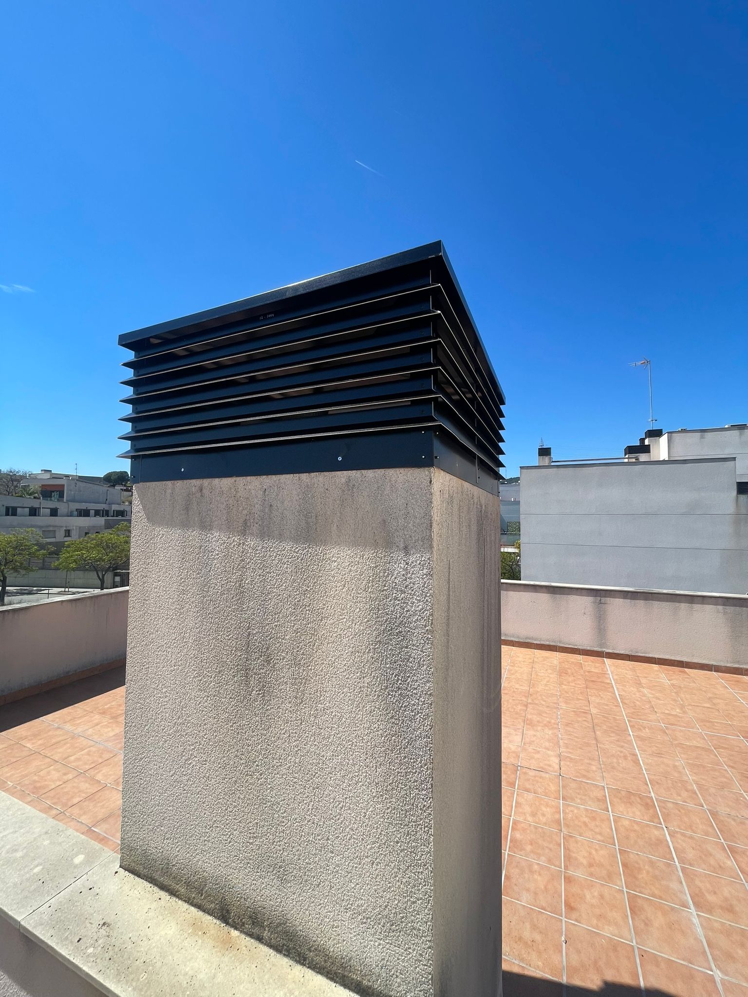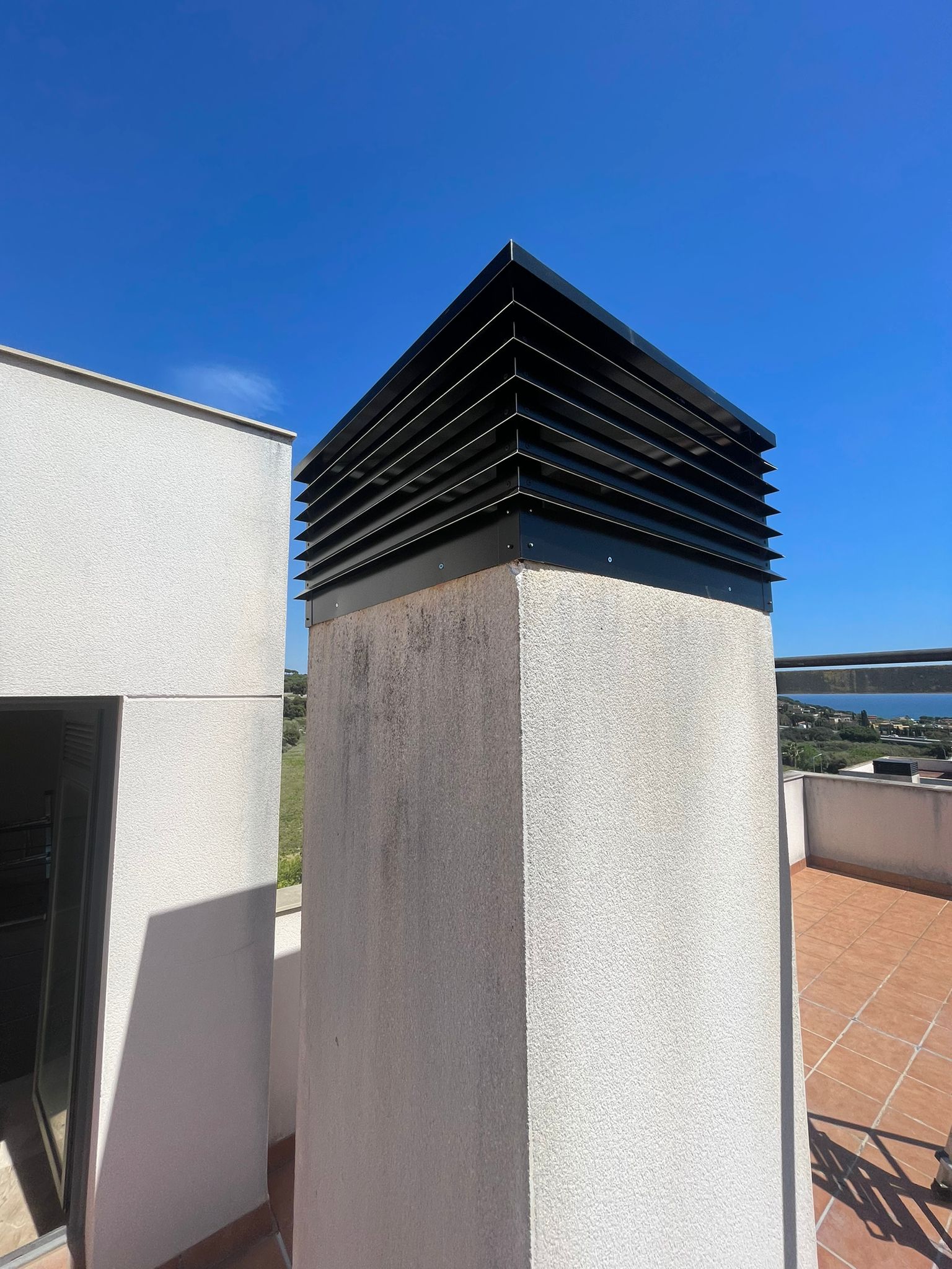 Cambio de sombreretes y remates de hierro por unos de aluminio e Instalación de nuevos sombreretes y remates en chimeneas.